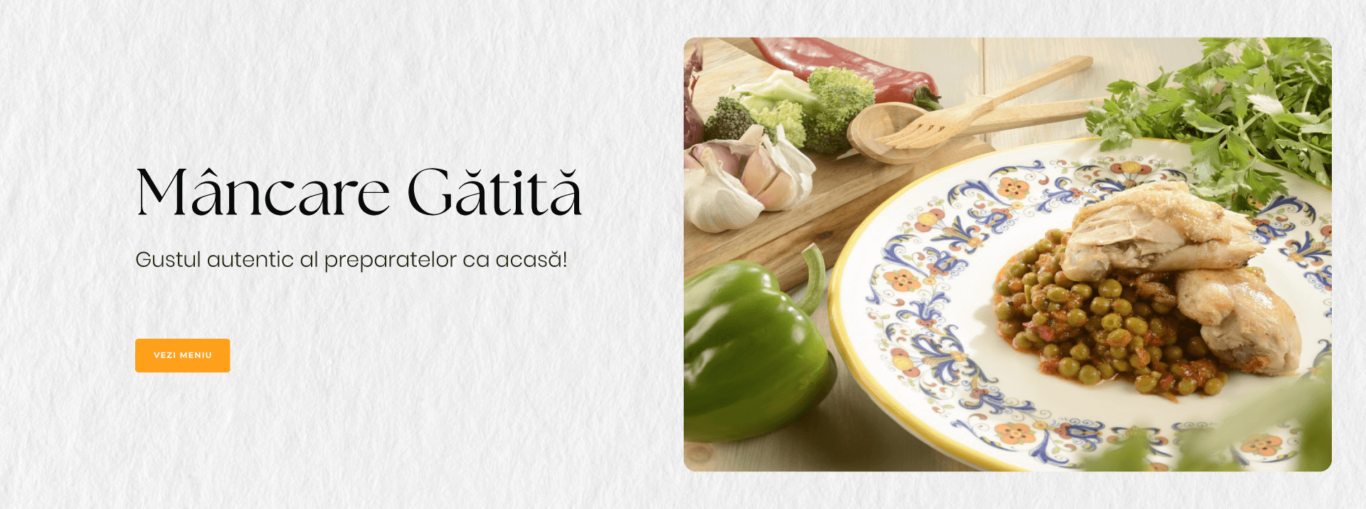 Comandă și savurează rapid mâncăruri proaspete, preparate special pentru tine. Gătim și livrăm doar pe comandă, nu lucrăm cu stocuri. Și putem personaliza unele produse, în funcție de preferințele tale. Mai mult, la cererea ta, putem prepara mâncăruri care nu sunt în meniu.