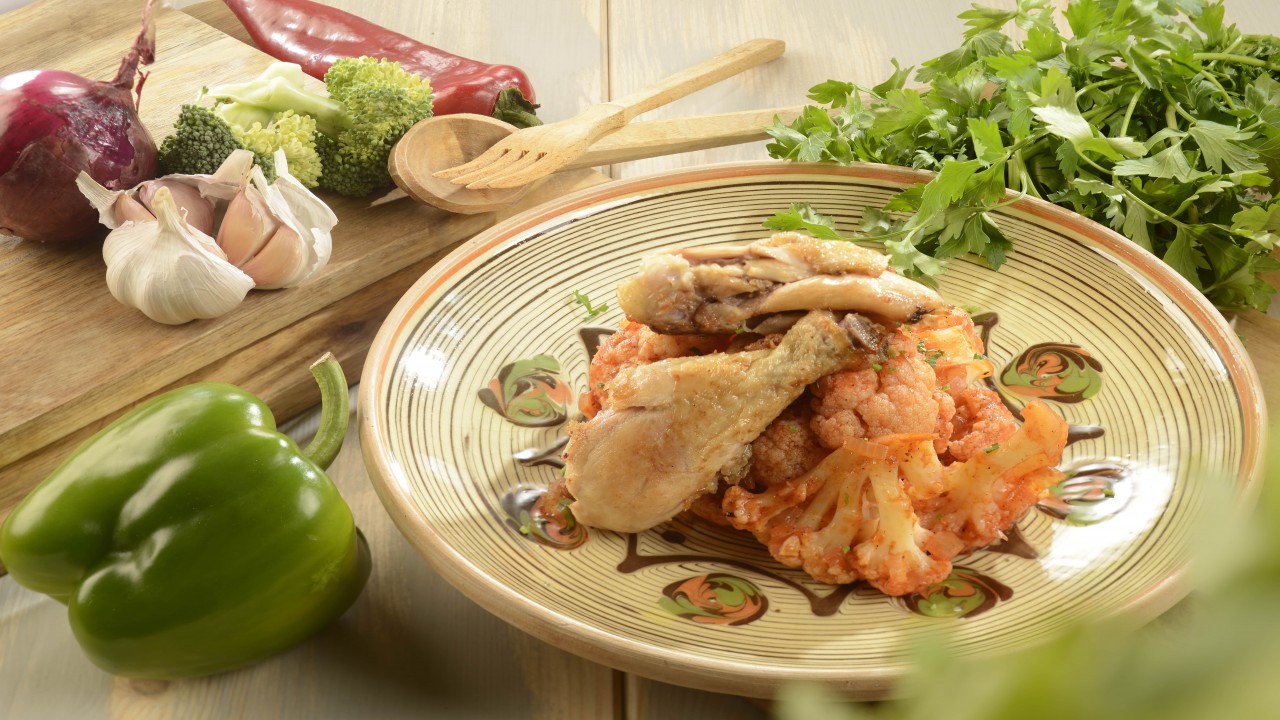 Descriere: Când vrei „altceva„, noi zicem că mâncarea de conopidă cu pui îți va satisface pofta negreșit. E un deliciu ușor, ce poate fi savurat atât la prânz, cât și la cină. Înmoaie o bucată de pâine în sosul aromat, ia o gură de legume și niște pui suculent și papilele îți vor mulțumi.