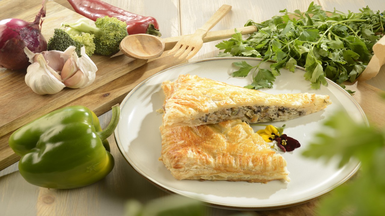 Ingrediente: foi de plăcintă, ceapă, pătrunjel, ouă, ciuperci, mărar (1 Kg, 3-4 pers.)