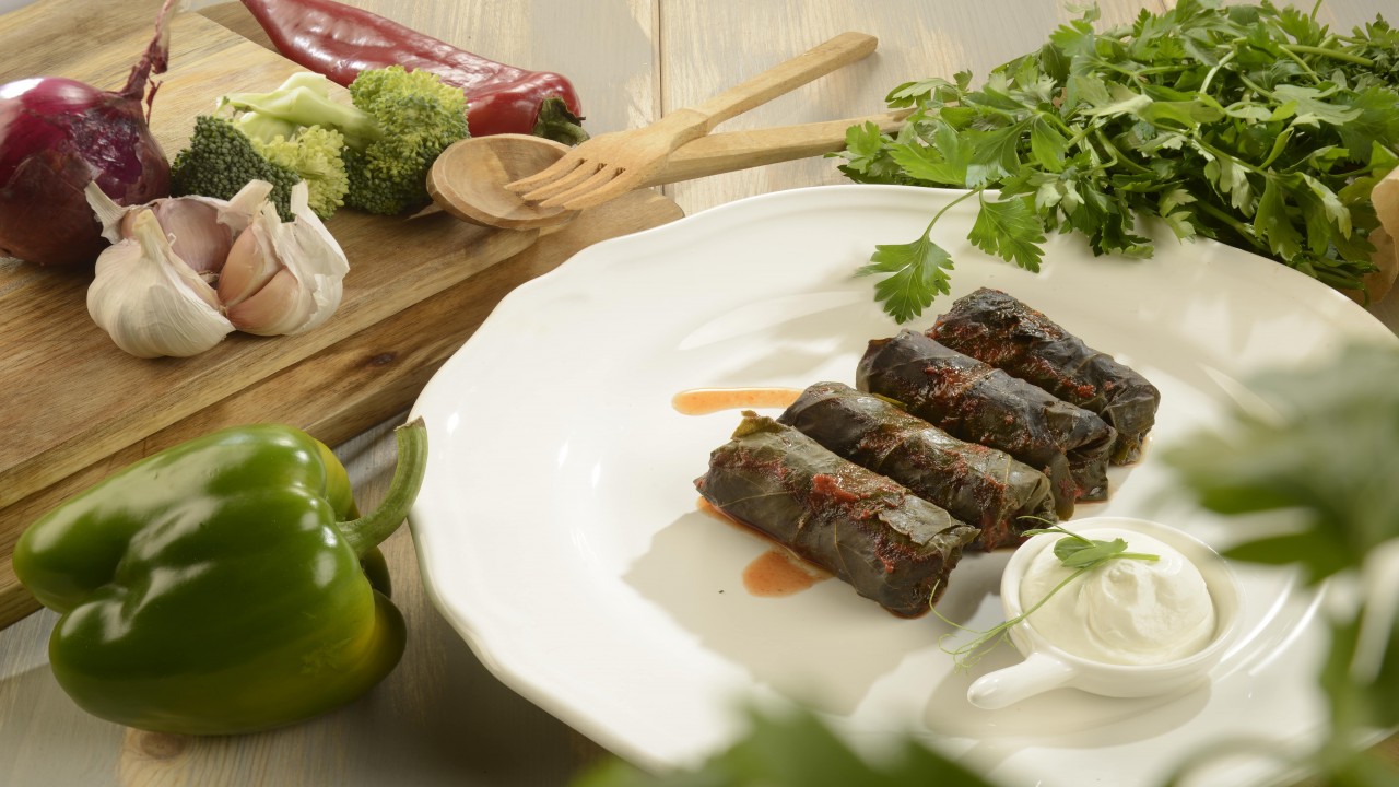 Din sarmalele noastre în foi de viță o să te-nfrupți cu mare poftă. Noi amestecăm bine ingredientele să se unească toate aromele într-o horă și-apoi le-ndesăm cu atenție în frunze de viță. Le dăm apoi la foc mărunt, să fiarbă pe îndelete și să devină suculente.
