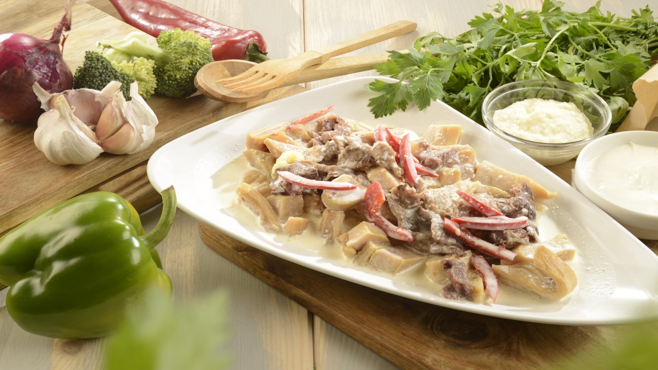 Rețetă: burtă de vită, picioare de vită, usturoi, hrean, smântână, usturoi